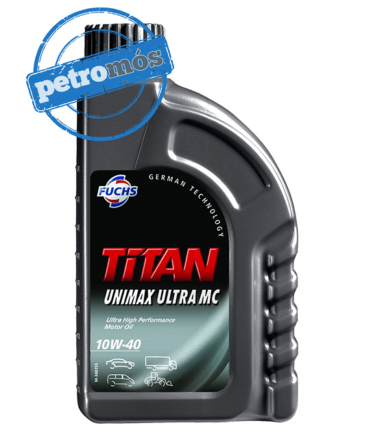 Óleo de motor de Ultra Elevada Performance com tecnologia MC (Molecular-Converted), de altas prestações e baixo consumo de combustível, para todo o tipo de veículos ligeiros e pesados, a gasolina ou diesel, com ou sem turbo-compressor. Vantagens substanciais na racionalização de produtos em frotas mistas (para veículos pesados e ligeiros). Permite prolongados intervalos de mudança de acordo com diversos fabricantes. Óptimo arranque a frio e reduzido consumo de óleo. Este produto é a evolução do FUCHS TITAN UNIMAX PLUS MC 10W40.